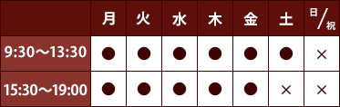 耳鼻咽喉科、音声外科の診療時間は下記のとおりです。